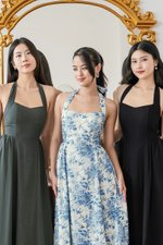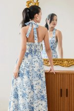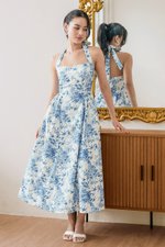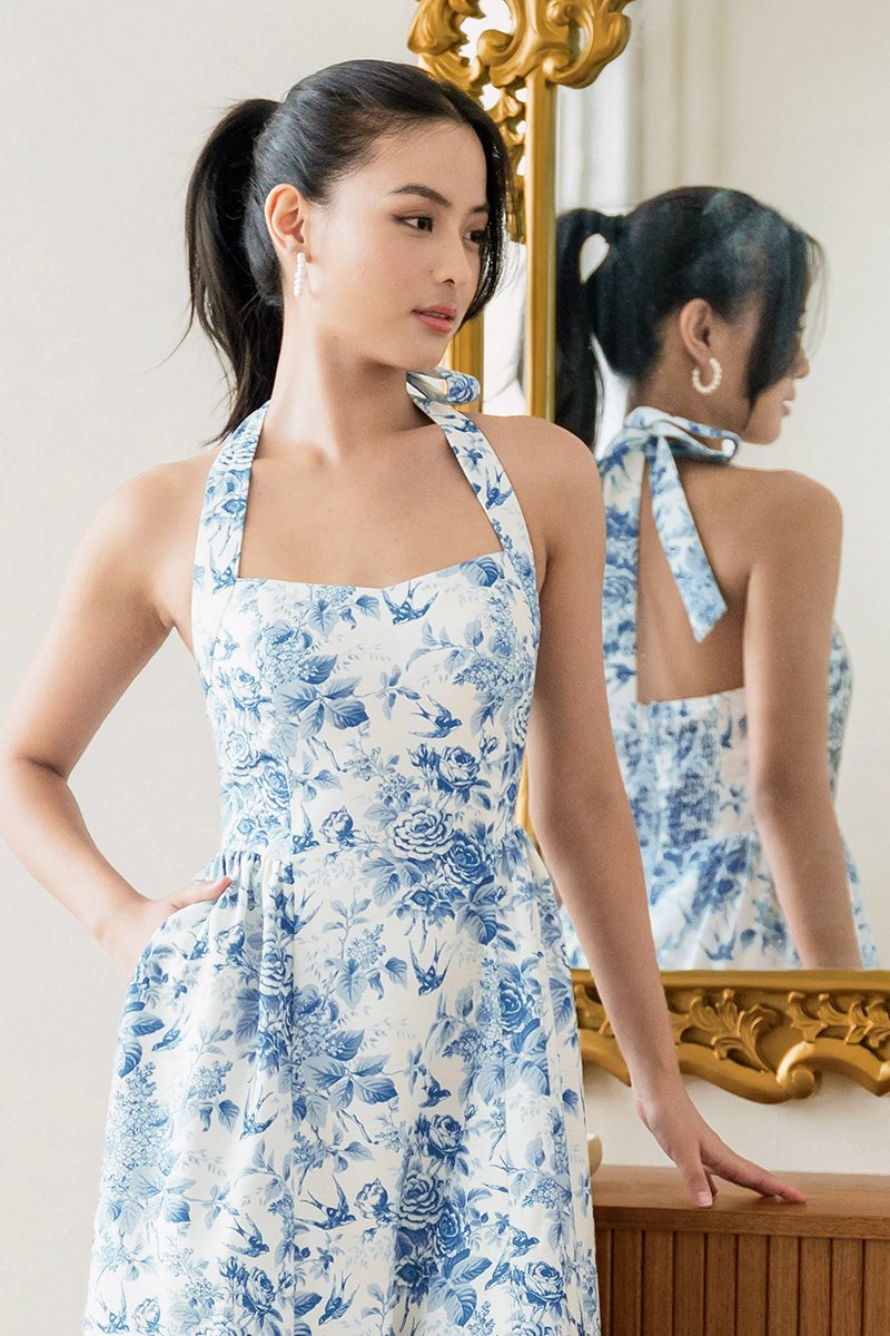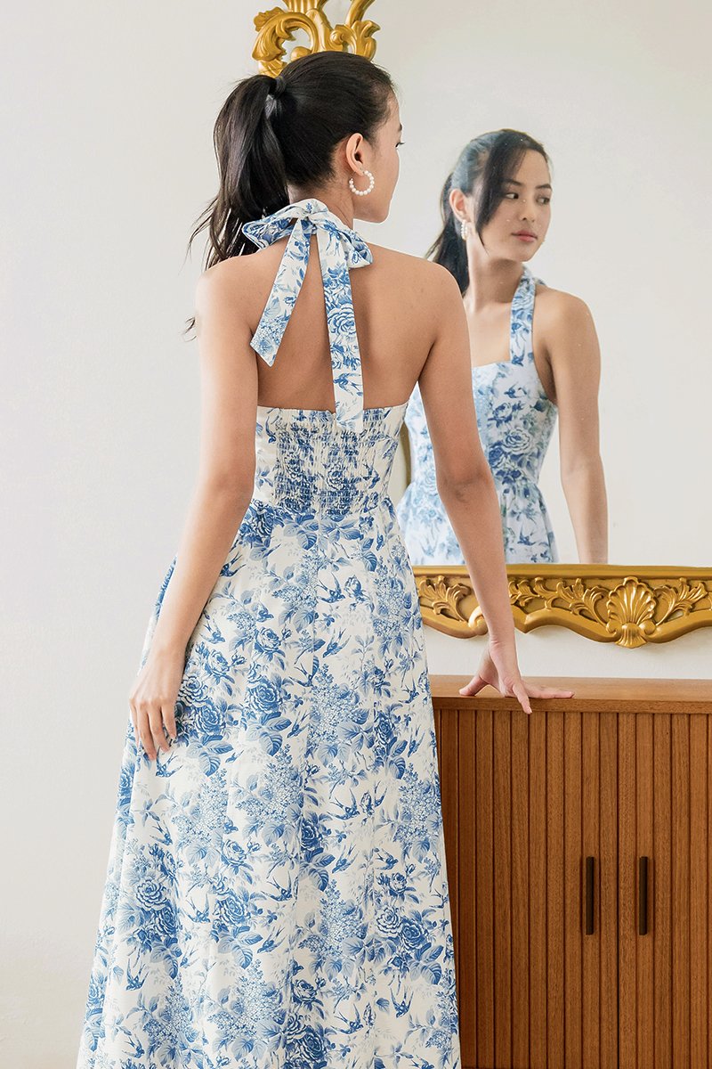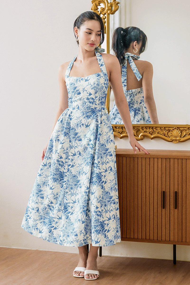 *PREORDER - ETA 2 Dec* Diana Padded Curved Waist Halter Midi Dress (Blue Porcelain)