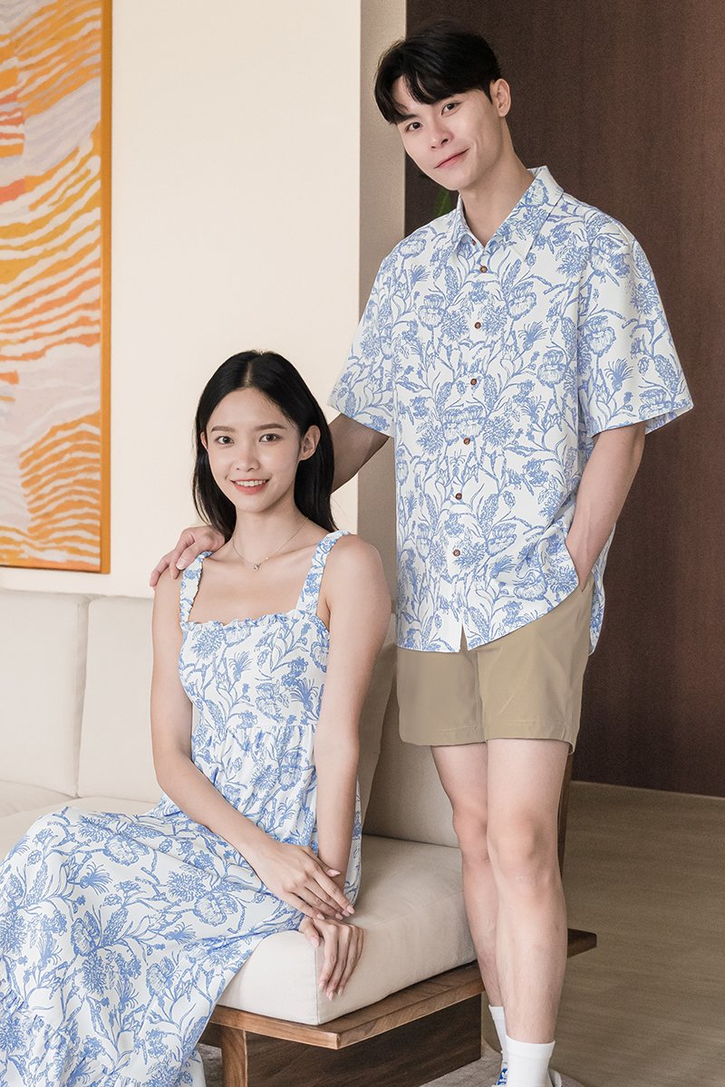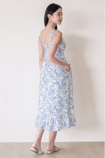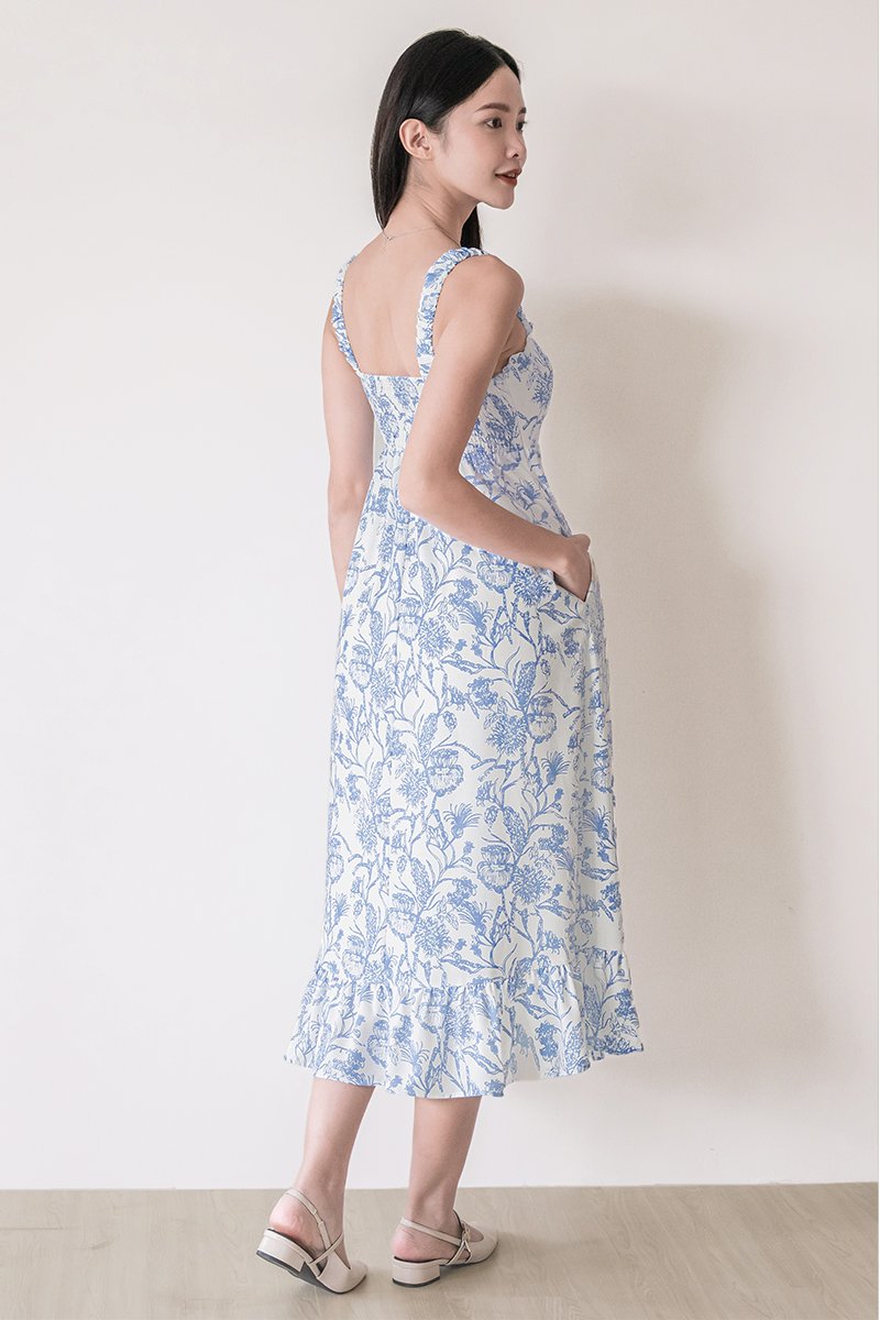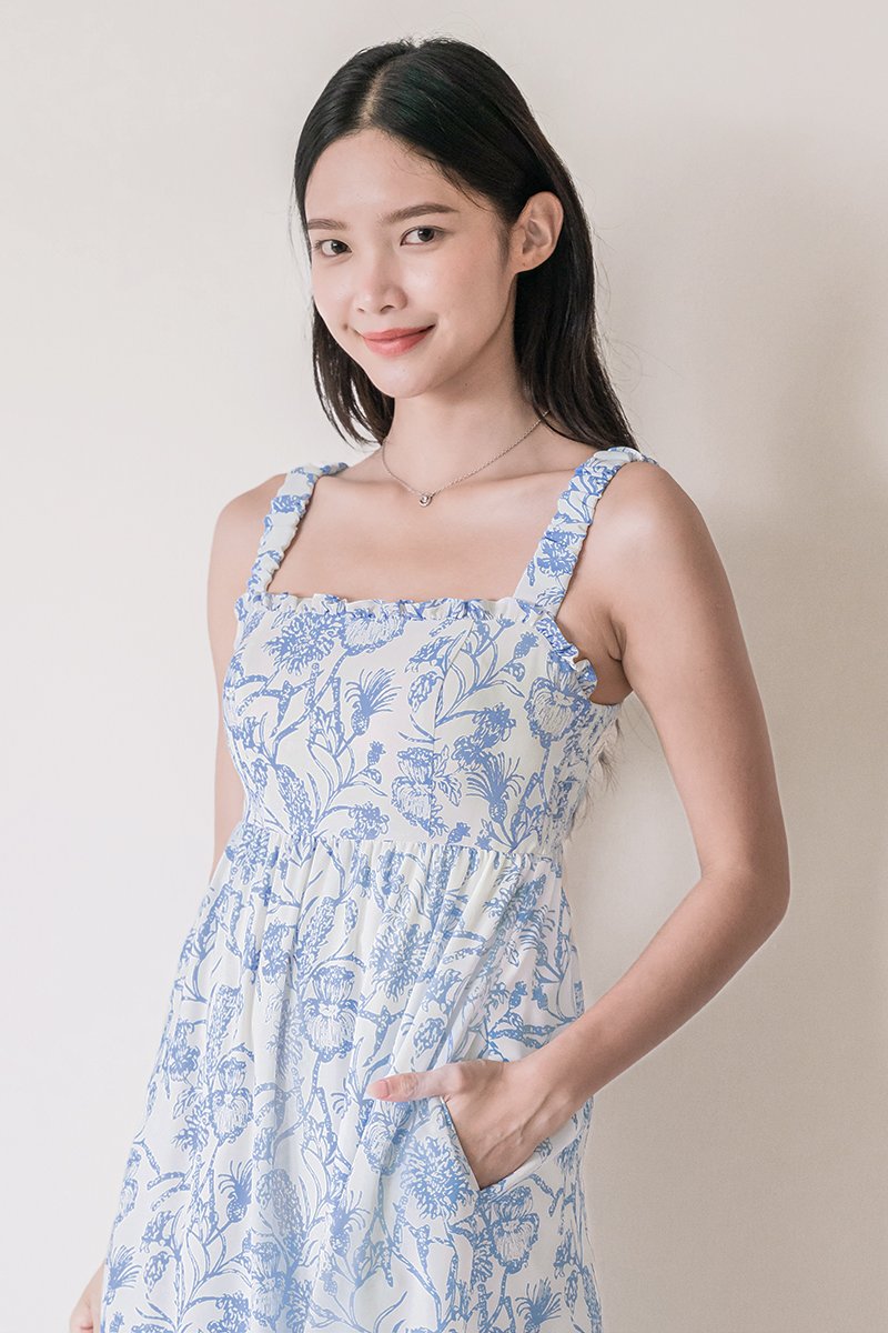 *PREORDER - ETA 18 Dec* Elleria Padded Ruched Strap Midaxi Dress (Blue Batik)