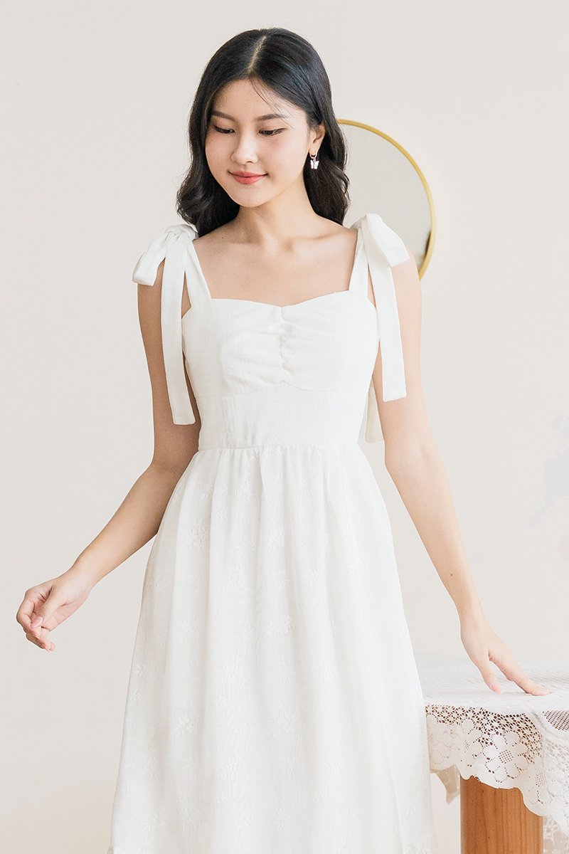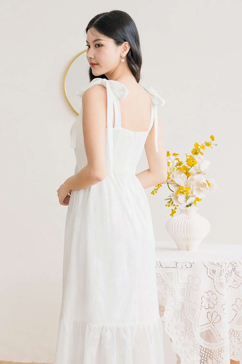 *PREORDER - ETA 2 DEC* Cherbelle Padded Tie-Strap Midaxi Dress (White)