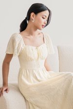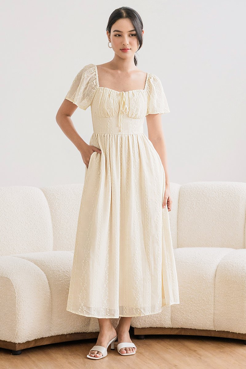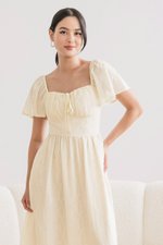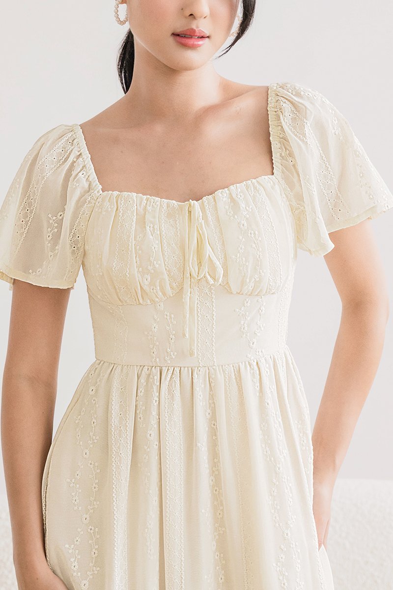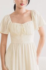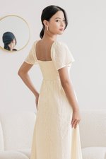 *PREORDER - ETA 2 Dec* Delena Padded Flutter Sleeve Midaxi Dress (Buttermilk)