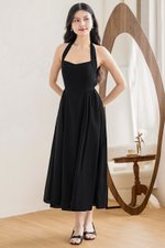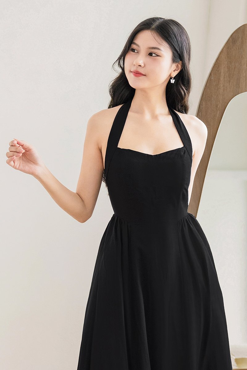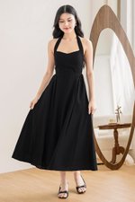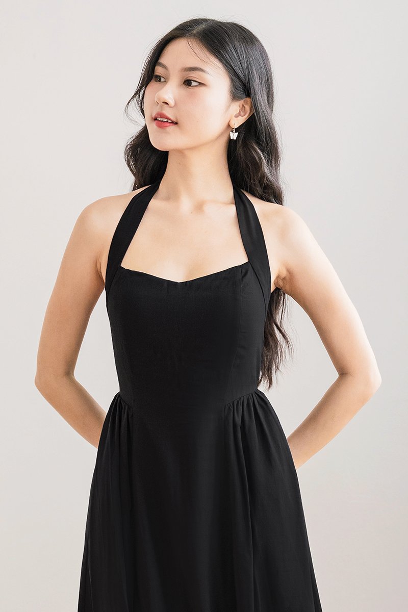 *PREORDER - ETA 2 Dec* Diana Padded Curved Waist Halter Midi Dress (Black)