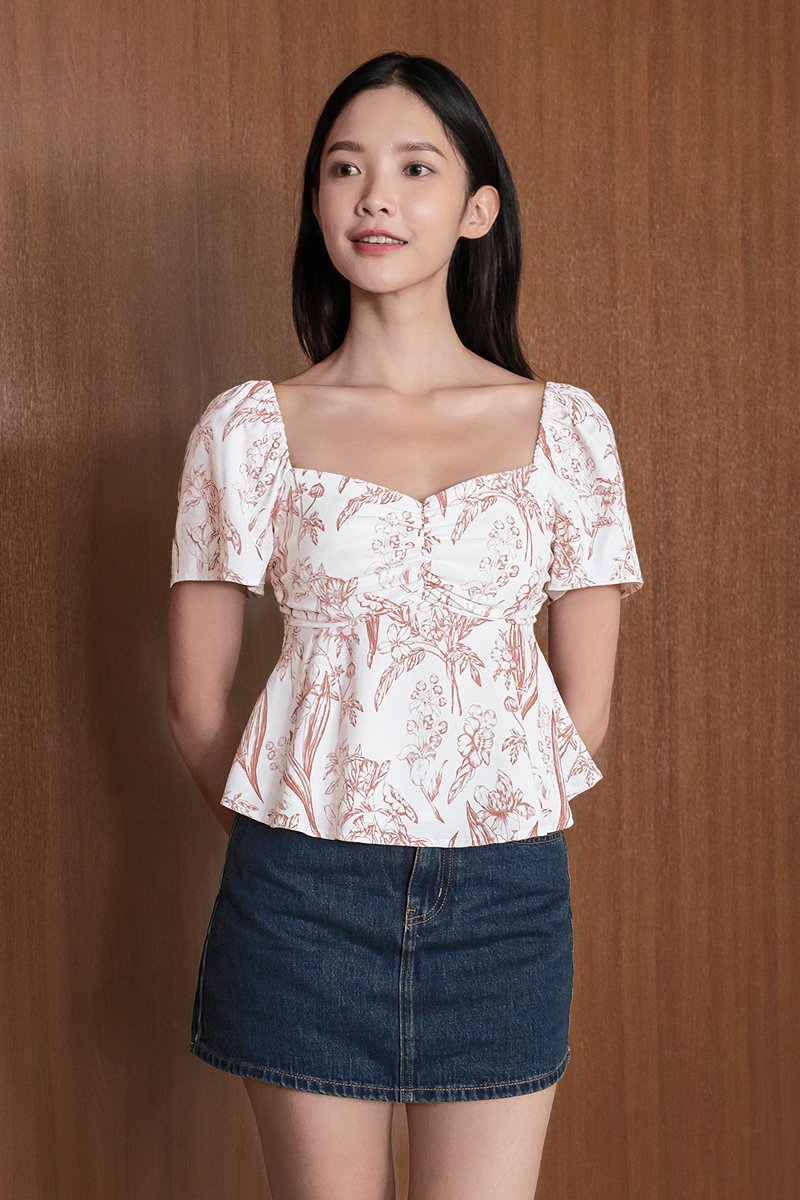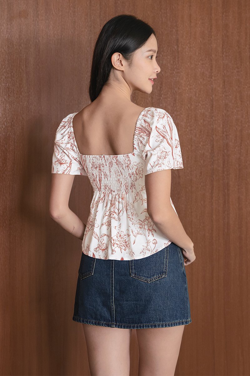 *PREORDER - ETA 23 Dec* Angie Padded Flutter Sleeve Top (Brick Red Enchanted Reverie)