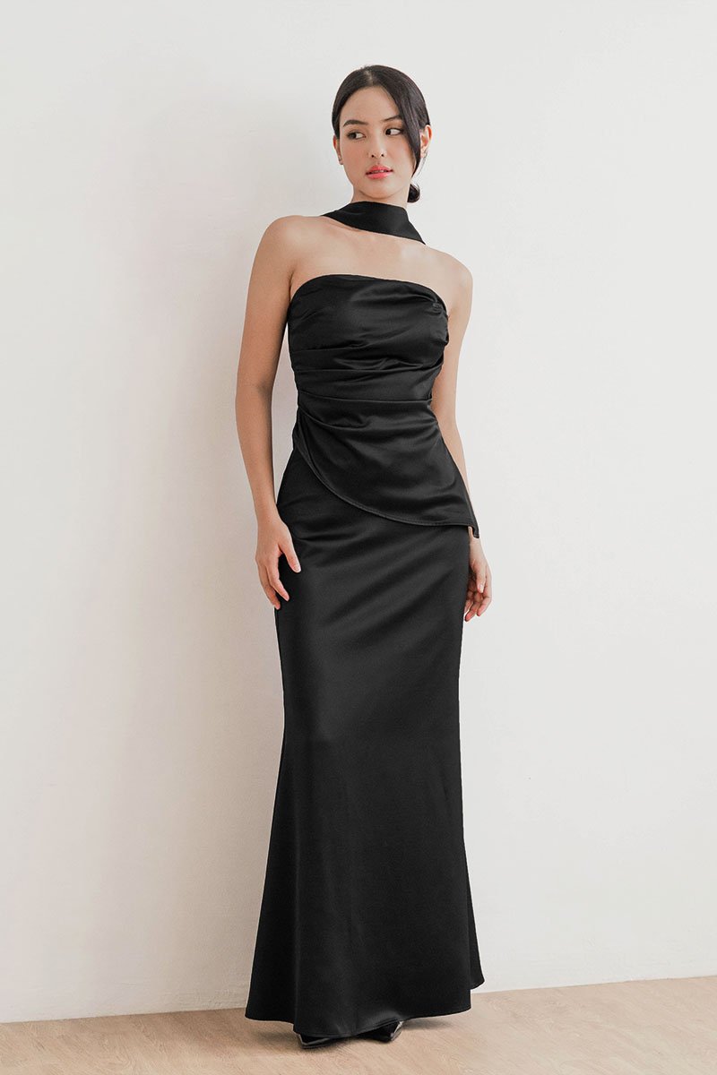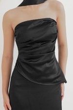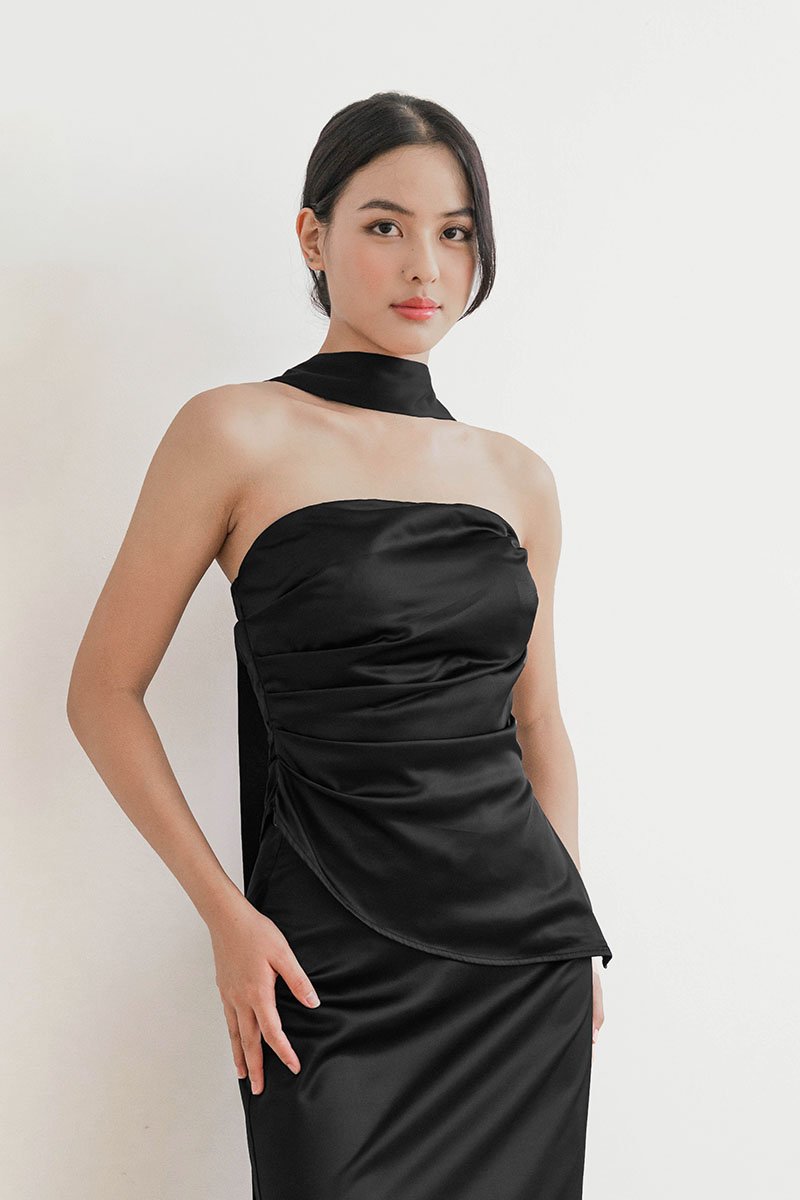 *PREORDER - ETA 24 NOV* Clarissa Padded Ruched Satin Tube Top (Black)