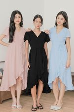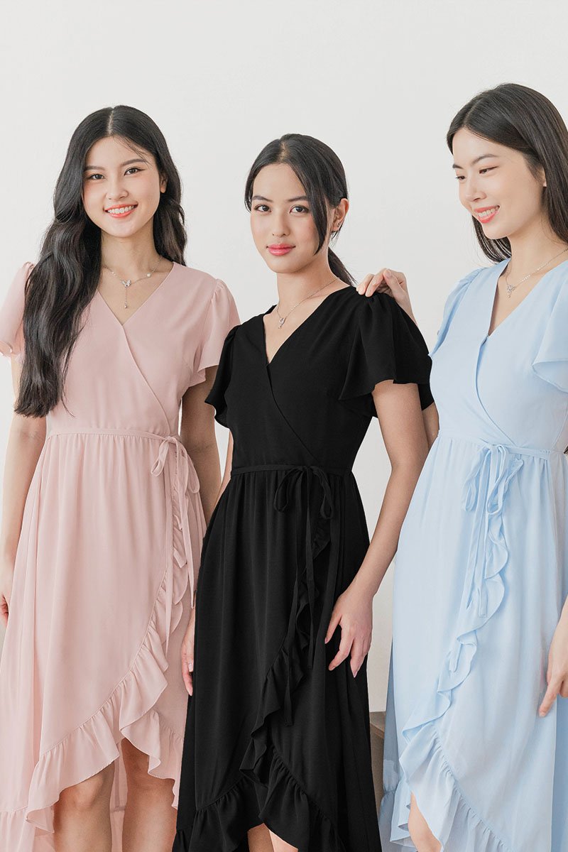 Classic and timeless - Claudia features flutter sleeves and a flowing wrap silhouette that moves gracefully with every step, perfect for effortless elegance on any occasion.