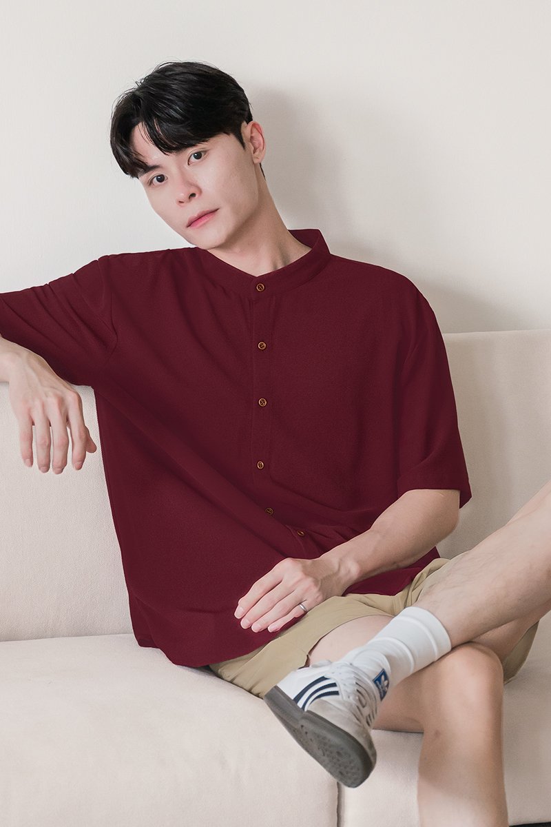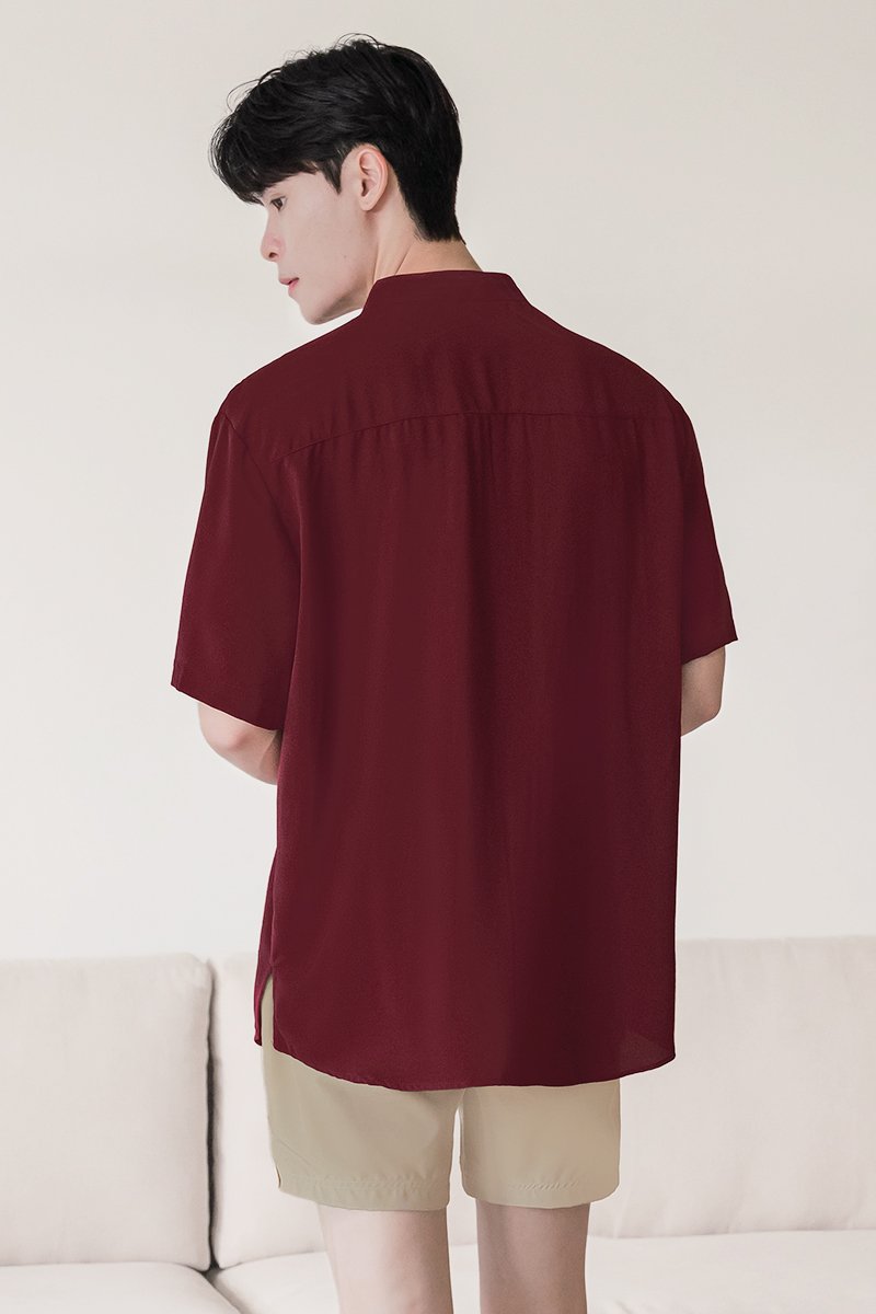 *PREORDER - ETA 31 Dec* 乐 Le Mandarin Collar Shirt (Maroon)