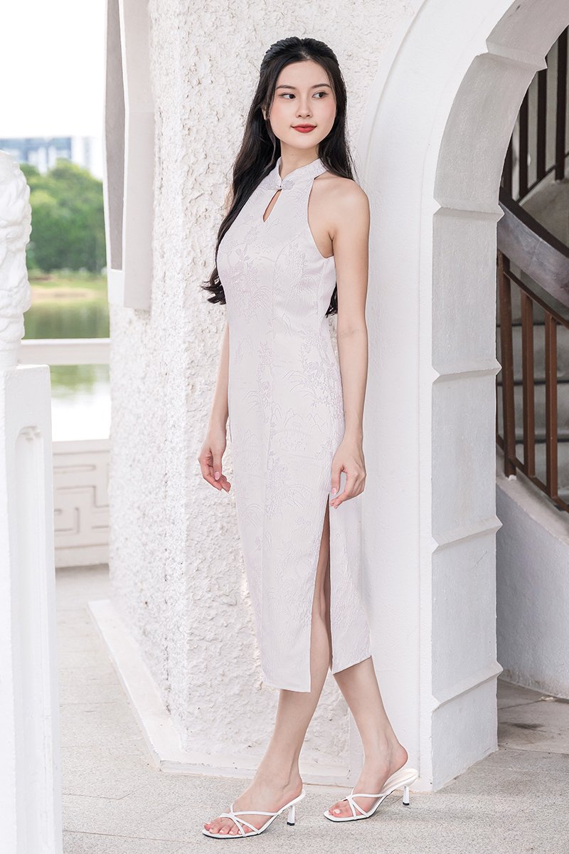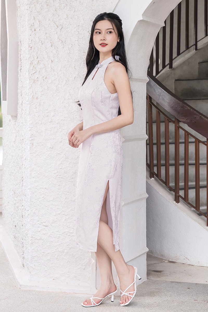 *PREORDER - ETA 31 Dec* 安 An Padded Halter Cheongsam Midi Dress (Lavender Treasures)