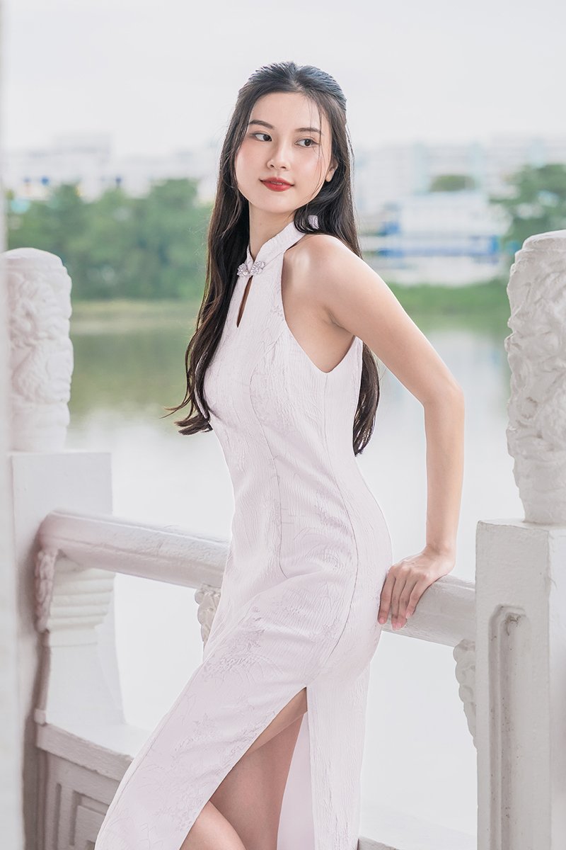 Classy cheongsam charm meets a comfortable, flattering silhouette. The An Dress features a halter neckline, keyhole detail, and side slit, making it a favourite choice for celebrations, family gatherings, or stylish daytime events.