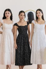 In our dainty floral szn - designed to flatter while keeping comfort in mind, this midaxi exudes timeless charm and effortless femininity with its cap sleeves and trimming details at the tiered bottom.