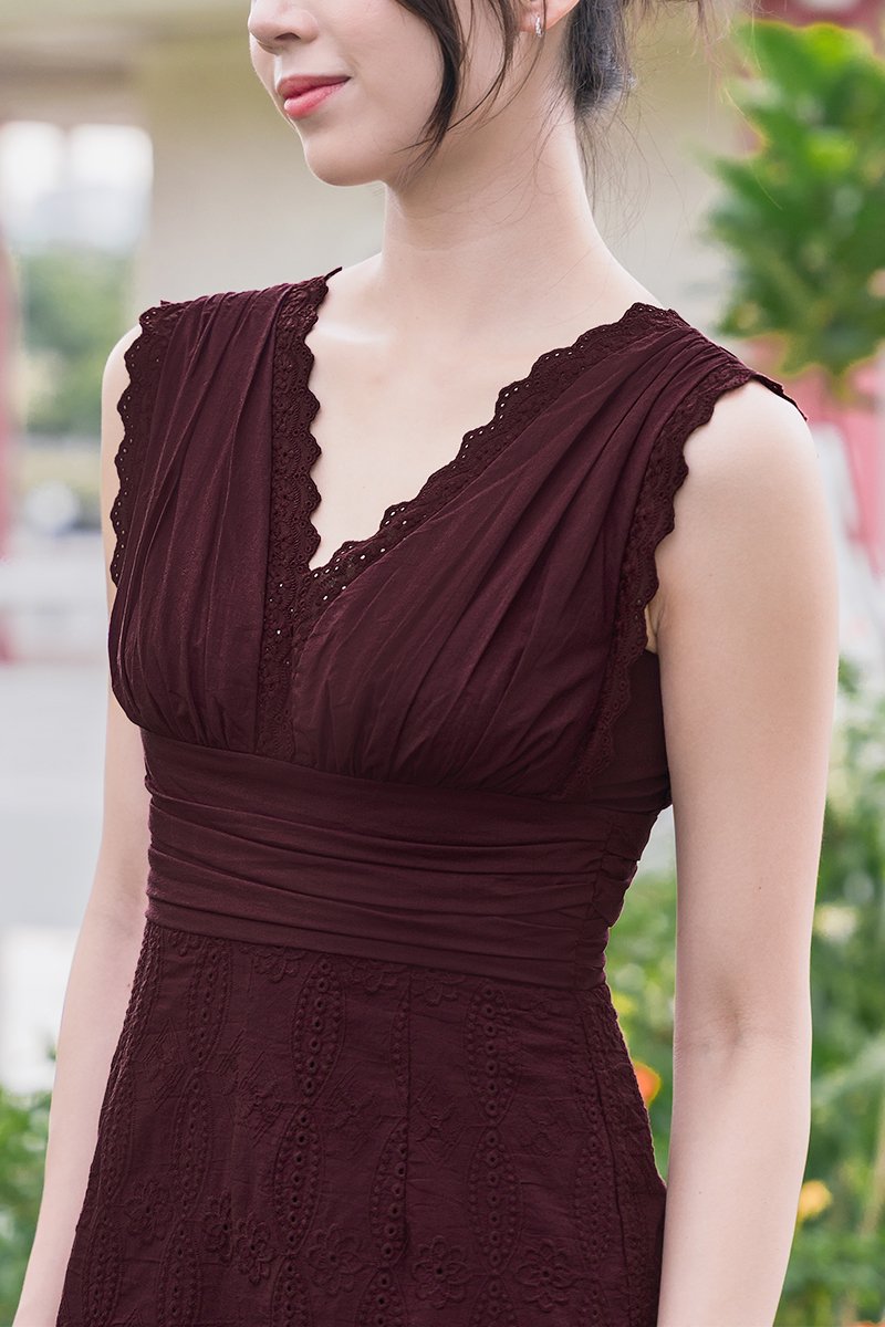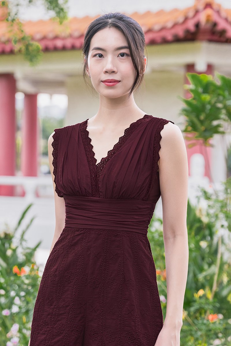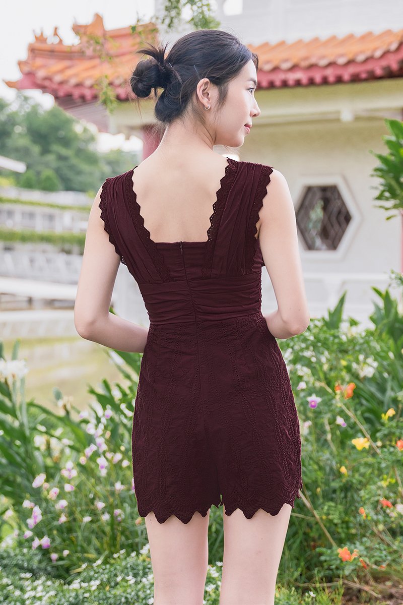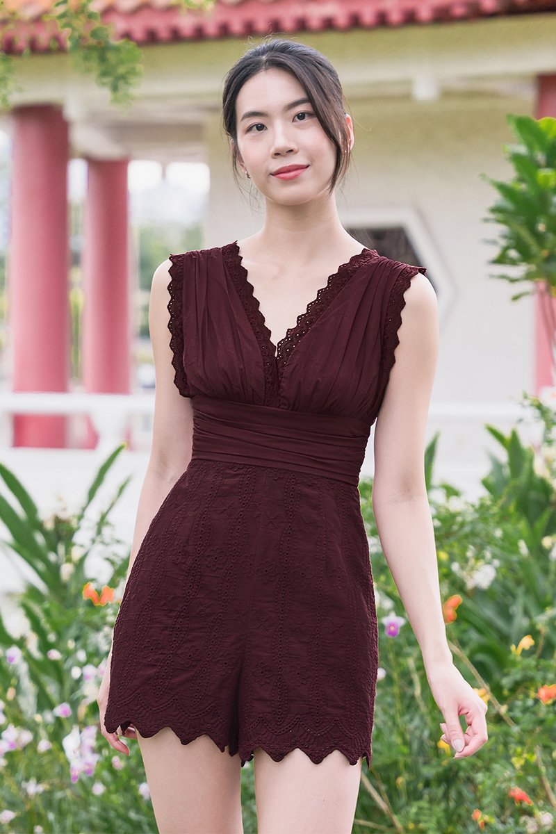 Tasha Eyelet Trim Hem Romper (Mahogany)